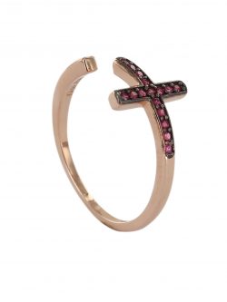 Inel cu cruce stras roșu în argint 925 cu baie din aur roz