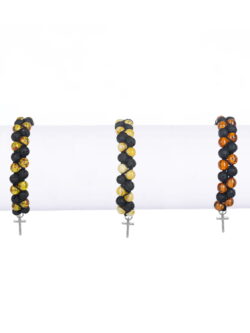Brățară rozariu cu o decadă boabe chihlimbar și lavă vulcanică