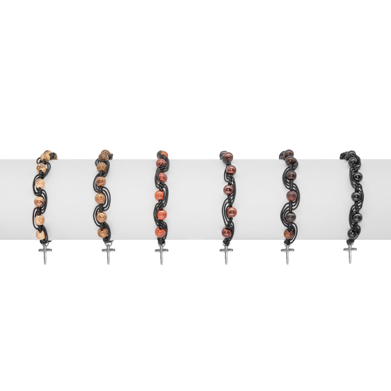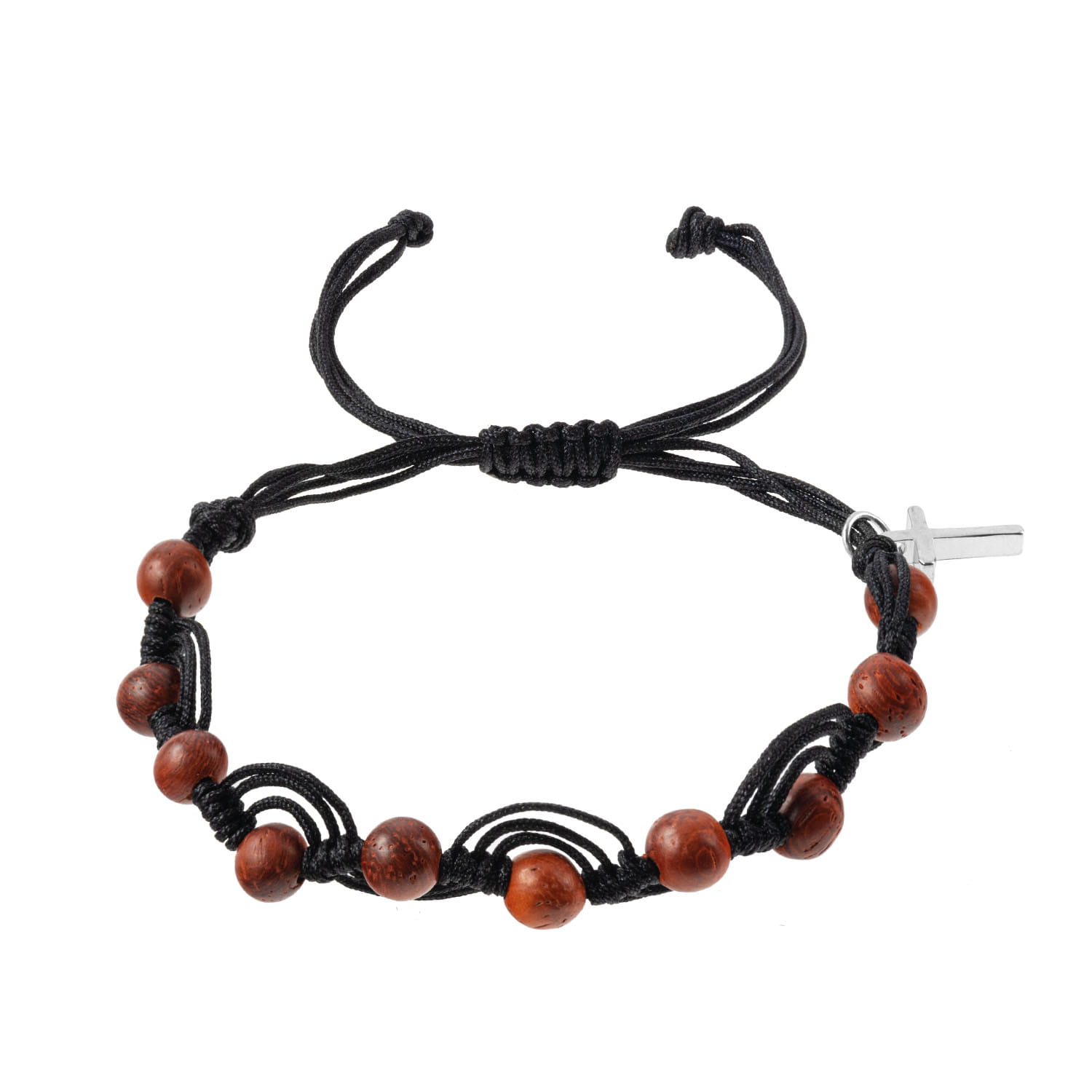 Brățară rozariu cu o decadă boabe rotunde de lemn și sfoară